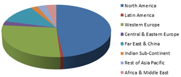 Все больше производителей выпускают смартфоны с чипами NFC, и этот факт дает аналитикам основания прогнозировать, что в Западной Европе, Северной Америке и других развитых странах платежи с помощью NFC и розничная торговля с помощью купонов и платежных билетов (Smart posters) станут для пользователей смартфонов распространенными сервисами. Например, операторы мобильной связи Франции надеются в 2011 г. продать не меньше 1 млн устройств с поддержкой NFC. При этом в 2014 г. почти половина всех выпущенных в мире стартфонов с поддержкой NFC будет сосредоточено в регионе Северной Америки (см. диаграмму).