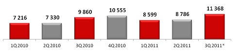 В&NBSP;ДЕНЕЖНОМ ВЫРАЖЕНИИ В&NBSP;3-М КВАРТАЛЕ 2011&NBSP;Г. РЫНОК ВЫРОС
