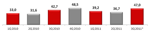 ИСТОЧНИК: МТС; ПО&NBSP;2&NBSP;КВ. 2011&NBSP;— ОЦЕНКА, 3&NBSP;КВАРТАЛ 2011&NBSP;—