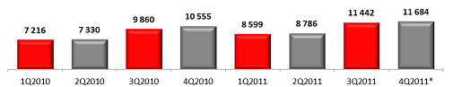 4-М КВАРТАЛЕ 2011&NBSP;Г. ВЫРОСЛО НА&NBSP;11% В&NBSP;СРАВНЕНИИ С&NBSP;АНАЛОГИЧНЫМ ПЕРИОДОМ ПРОШЛОГО ...