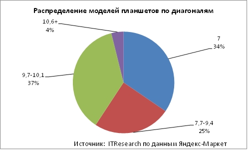 Стоит отметить, что данная раскладка близка к рассчитанной аналитической компанией ITResearch по результатам реальных продаж в 1-м квартале текущего года. Единственное существенно различие: самые большие планшеты при относительно неплохой представленности контролируют менее полпроцента продаж.