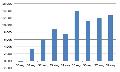 Но что самое примечательное, понедельные колебания стоимости проекторов (см. рисунок) также были почти соразмерны и синхронны колебанию валютного курса.