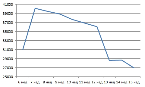 В течение месяца процесс носил плавный характер, затем наблюдался резкий сброс, который опять притормозился в последние несколько недель. В целом сейчас усредненный аппарат стоит около 27 тыс. рублей, что более чем на 10% ниже, чем в начале февраля.