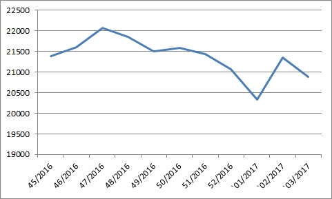 После новогоднего отскока данный тренд продолжился, но пока средний уровень еще находится на уровне на 500 руб. выше «дна» конца года.
