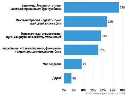 Выяснилось, что пользователи в целом благосклонно относятся к идее решения, которое даст им возможность получить контроль над своими «цифровыми воспоминаниями», но 28% респондентов отметили, что будут или не будут пользоваться им в зависимости от того, насколько оно окажется удобным.