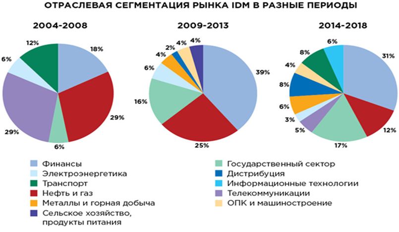 Замыкают тройку лидеров нефтегазовые компании. За рассматриваемый период количество проектов в этой отрасли сократилось более чем в два раза. Такая динамика связана прежде всего с высоким количеством ранее реализованных внедрений: в период 2004-2008 гг. компании этого сектора активно внедряли системы управления доступом, и их доля в общем числе проектов составляла существенные 29%. Сейчас наметилась тенденция к миграции с одного продукта на другой, но первоначальные внедрения до сих пор преобладают. (Рис. 1)