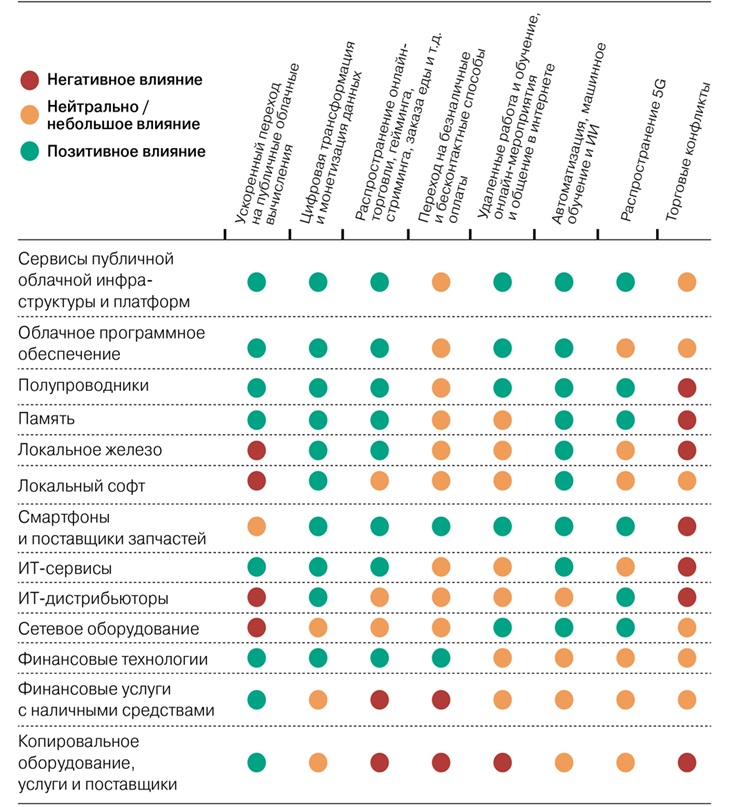 Об этом говорит недавний отчёт аналитического агентства Moody`s, посвящённый анализу влияния наиболее значимых из сложившихся за время пандемии COVID-19 бизнес-трендов на различные сферы ИТ-индустрии области в ближней и среднесрочной перспективе. Среди них: