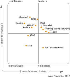 Магический квадрант Gartner для рынка UCaaS в 2012 г.