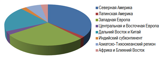 Наибольшую часть мировых доходов аккумулируют операторы стран Западной Европы, Северной Америки и Китая: в 2016 г. доля этих стран составит 84% от мирового рынка. К этому же периоду доля доходов от сервисов LTE в суммарных поступлениях от всех мобильных сервисов в мобильных сетях всех технологий (от