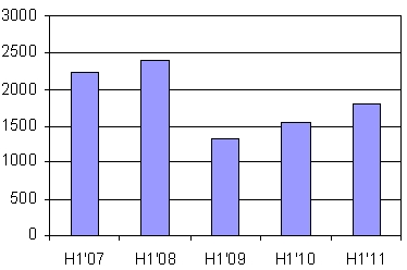 В лазерном сегменте всего за полугодие 2011 г. было продано чуть больше миллиона устройств, причем наиболее высокими темпами росли продажи монохромных принтеров и МФУ для рабочих групп. За этот период принтеров производительностью свыше 30 стр./мин было продано на 45% больше, чем годом раньше, а настольных МФУ со скоростью печати/копирования свыше 20 стр/мин — на 67%. На треть возросли также продажи цветных лазерных принтеров и почти в полтора раза — цветных лазерных МФУ.