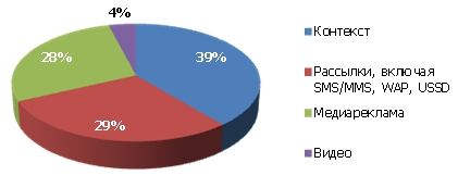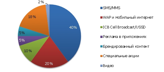 Рис. 2. Структура рынка мобильной рекламы и маркетинга по каналам доставки, 2010 г.