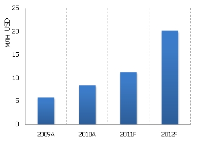 Рис. 4. Прогноз рынка мобильной рекламы и маркетинга в 2009-2012 гг., в млн долл.