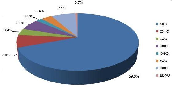 По сравнению с 2009 г. доля Москвы в структуре продаж компании усилилась и составила 69.3% (см. диаграмму 2). Объем продаж по регионам в 2010 г. распределился следующим образом: Приволжский Регион — 7.5%, Северо-Западный Регион — 7%, Центральный Регион — 6.3%, Сибирский Регион — 3.9%, Уральский Регион — 3.4%, Южный Регион — 1.9%, Дальневосточный Регион — 0.7%.