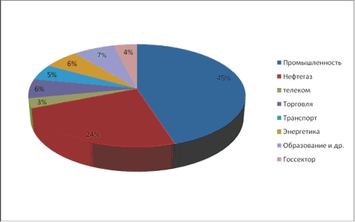 В отраслевом разрезе наибольший спрос наблюдался в промышленной и нефтегазовой отраслях (см. диаграмму), на которые в сумме пришлось больше 2/3 выручки «Галактики».