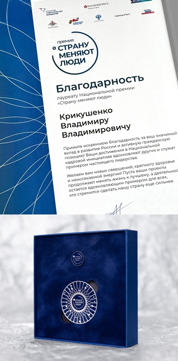 Владимир Крикушенко, генеральный директор NexTouch, ГК «Некс-Т» стал лауреатом первой национальной премии «Страну меняют люди» за значимый вклад в развитие России, активную гражданскую позицию и достижения в Национальной кадровой инициативе.