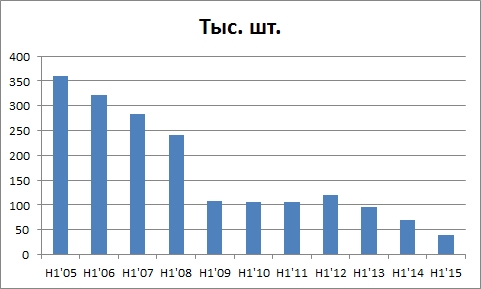 Однако, если посмотреть на многолетнюю динамику этого рынка (смрисунок), видно, что падение приобрело уже хронический характер. Поэтому можно предположить, что воздействие экономического фактора является сейчас, возможно, решающей, но и не единственной причиной.