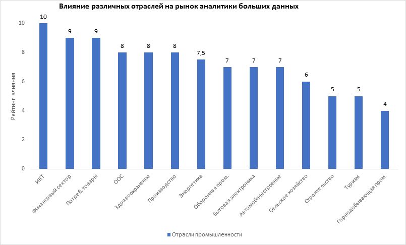 Рейтинг влияния различных отраслей экономики на рынок BDA