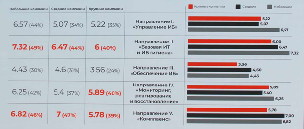 Рис. 3. Средние цифры, характеризующие уровни ИБ-зрелости компаний, ИБ-специалисты которых приняли участие в исследовании