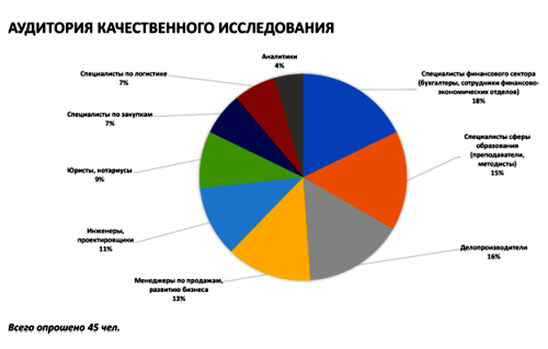 Рис. 2. Аудитория качественного исследования Content AI, в ходе которого было опрошено 45 специалистов