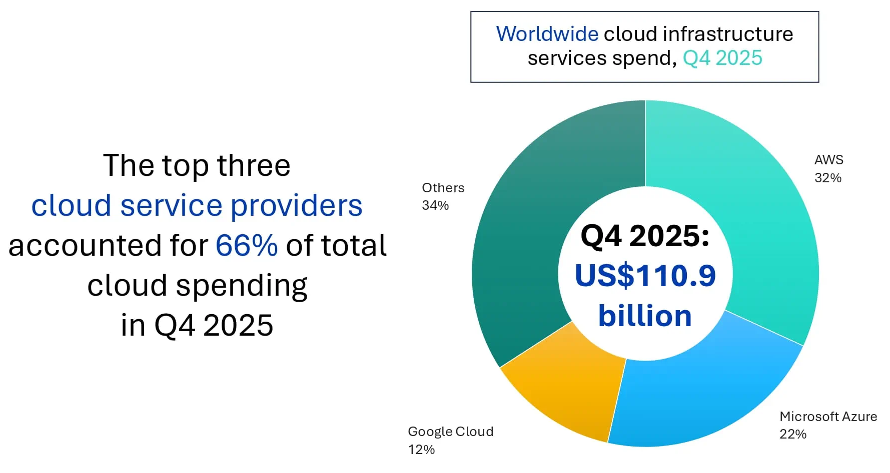 На первую тройку глобальных поставщиков облачных инфраструктурных услуг в IV кв. 2025 г. пришлось две трети всех мировых расходов по данному направлению