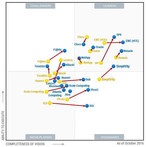 Компания Simplivity, находившаяся в прошлом году в квадранте визионеров, перешла в группу лидеров.