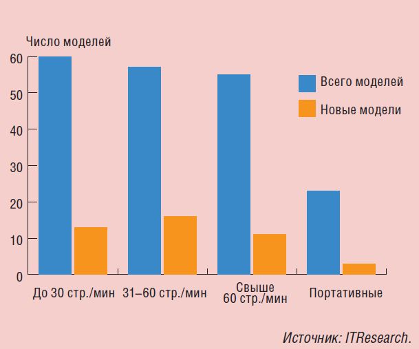 Одним из актуальных трендов в товарном предложении на рынке документ-сканеров является выравнивание количественного состава моделей (и интенсивности их обновления) в основных категориях этого класса устройств – моделей начального уровня (производительностью до 30 стр./мин), сканеров для рабочих групп (31-60 стр./мин) и наиболее скоростных моделей (свыше 60 стр./мин) для потоковой оцифровки большого объема документов. Это наглядно видно из рис. 2).