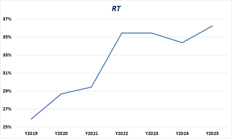 Рис. 1. Динамика доли RT ИБП. В деньгах