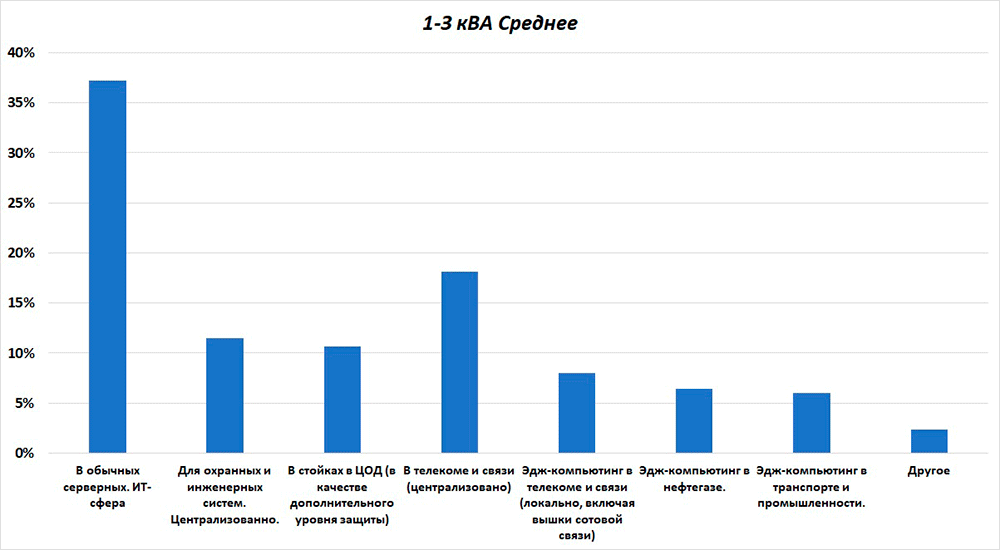 Получается, что, несмотря на определённые различия между двумя этими мощностными подклассами, качественного расхождения между ними по сферам применения не наблюдается. Лидирует ИТ-сфера, телеком и связь, а также Эдж-компьютинг. Также активно используется в стойках в ЦОДе, в качестве дополнительного контура защиты для самых критичных приложений.