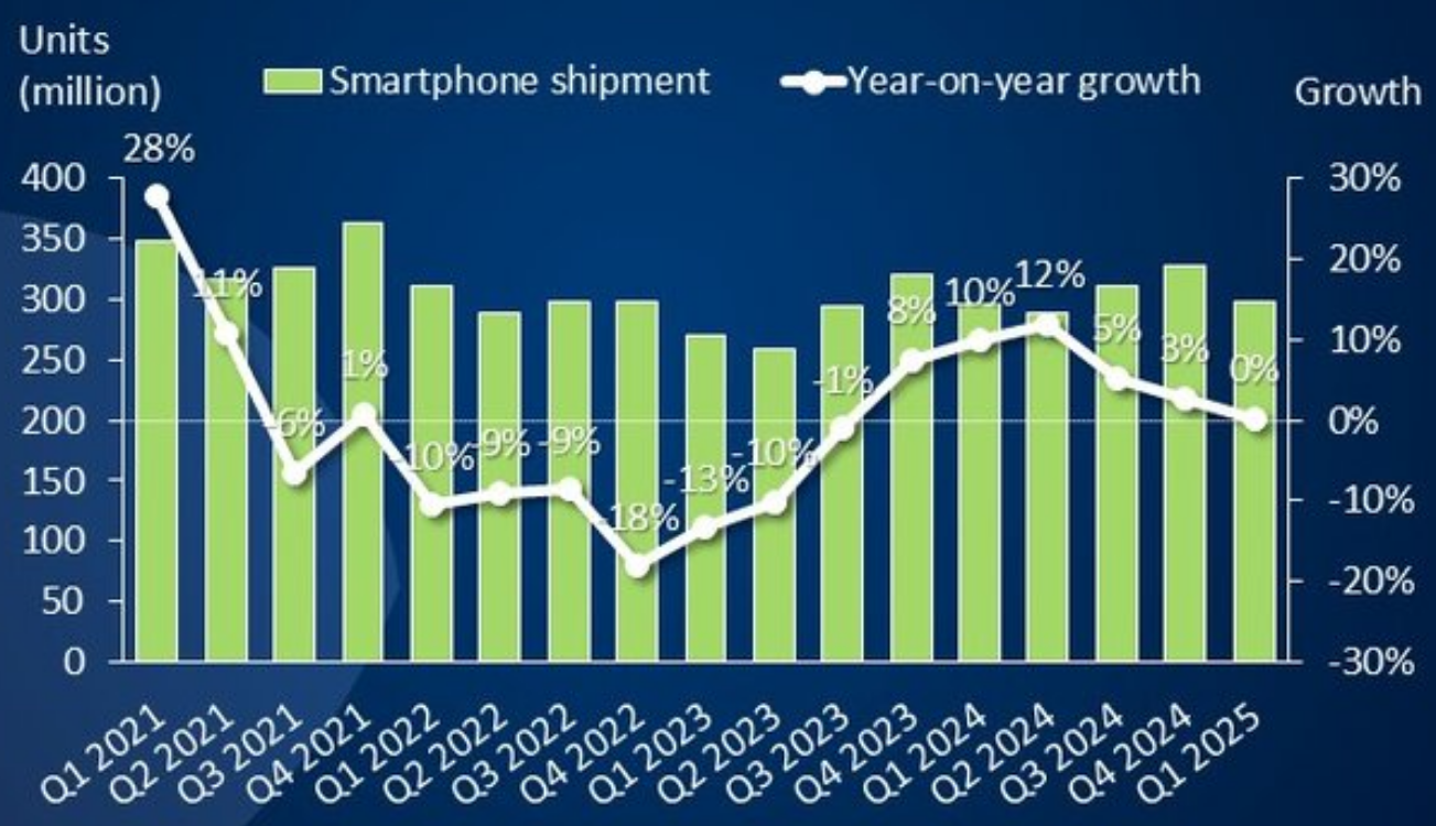 Совсем недавно, в середине апреля, в Canalys с сокрушением отмечали крайне невысокий показатель прироста отгрузок смартфонов в мировой канал продаж за I кв. 2025 г. в годовом выражении, — всего-то 1%. Однако не прошло и пары недель, как уточнённые данные заставили аналитиков скорректировать свои выводы, что, откровенно говоря, делается крайне нечасто. В основном колебания данных (расхождения между предварительными оценками и фактическим числом поставленных в канал устройств) остаётся в пределах статистической погрешности, тем более, что оценка Canalys, относящаяся к середине апреля, оперировала исключительно относительными величинами (процентами), а не абсолютными (количеством единиц товара). И всё же на сей раз экспертам пришлось произвести заметную коррекцию.