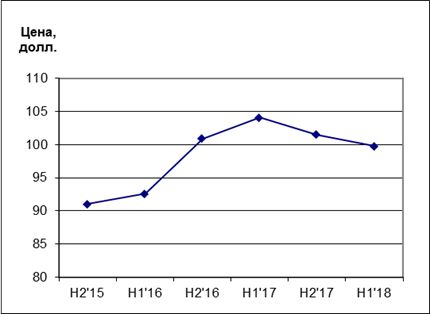 По данным аналитической компании ITResearch, средняя цена планшетного сканера на российском рынке составила 100 долл. Это примерно на 2% меньше, чем во второй половине прошлого года и на 4% меньше, чем в первой половине 2017 г., когда был зафиксирован локальный ценовой максимум последних трех лет (см. рисунок).