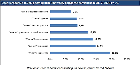 Ключевыми сегментами мирового рынка стали «умные» сервисы и «умное» госуправление. По оценке компании Frost & Sullivan, наиболее быстрорастущим сегментами рынка является «умная» энергетика и «умный» транспорт.