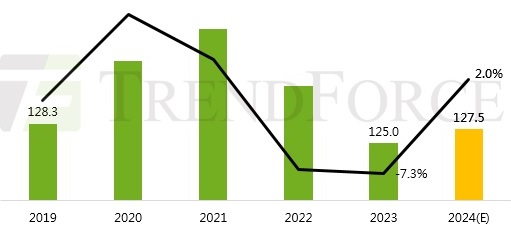Начиная с 2020 г. динамика мирового рынка компьютерных мониторов демонстрировала нисходящий тренд, перейдя в 2022 г. к отрицательным значениям, а по итогам 2023-го установившись на уровне −7,3% год к году. В 2024 г., однако, в TrendForce ожидают возвращения этого показателя к росту: текущий год, уверены аналитики, завершится выходом глобальных отгрузок мониторов на рубеж 127,5 млн единиц, что на 2% превысит достижение 2023-го (125,0 млн единиц).