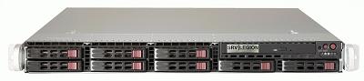 В этот сервер можно установить до 8 дисков 2,5″ с «горячей» заменой SAS/SATA корпоративного класса. Допускается установка твердотельных накопителей SSD для повышения производительности дисковой подсистемы. Также при использовании аппаратных рейд-контроллеров, поддерживающих технологию LSI Cache-cade или Adaptec Max-IQ, возможно использование SSD-накопителей в качестве кэша для HDD, что способствует значительному увеличению производительности.