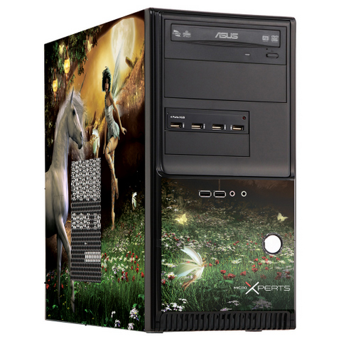 Ещё одна особенность школьного компьютера MicroXperts [C100-02] — набор наклеек для системного блока. Всё-таки десктоп будет стоять в детской комнате и должен гармонично вписываться в интерьер. Поэтому пользователь по желанию может обклеить корпус либо роботами (для мальчиков), либо изображениями сказочного леса, где живут единорог и фея (для девочек). Дизайн наклеек авторский, разработан специально для этого компьютера.
