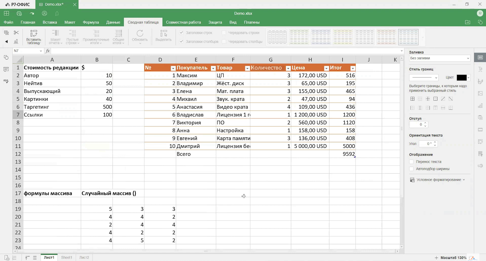 МойОфис — еще один пакетный русский аналог Microsoft Office. В Таблицах можно выполнять любые математические вычисления, автоматически считать суммы, среднее, минимальное и максимальное значение. Создавайте сводные таблицы и настраивайте их внешний вид, используйте разные функции: от финансовых до тригонометрических.