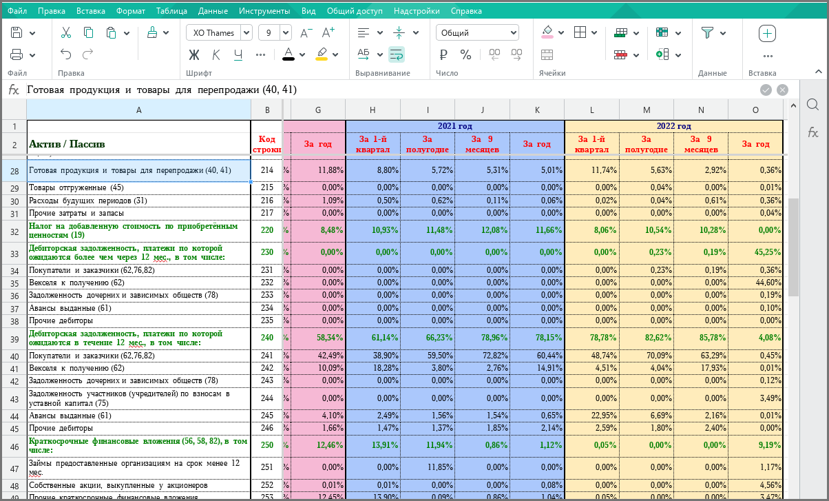 Программное обеспечение Р7-Офис так же разрабатывалось как аналог Microsoft или WPS Office российского производства. Конкретно редактор таблиц поддерживает форматы XLSX, XLS, ODS, CSV. Доступно более 440 функций и формул, совместная разработка при помощи комментариев в документе, шаблоны стандартных таблиц. Пользователь может добавлять любые вспомогательные элементы, например, изображения, ссылки, диаграммы и т. д.