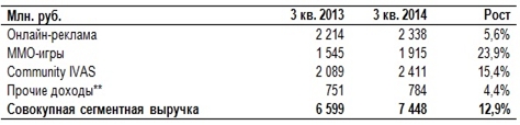 Mail.Ru Group Limited раскрыла предварительные неаудированные данные по сегментной выручке за третий квартал 2014 г.