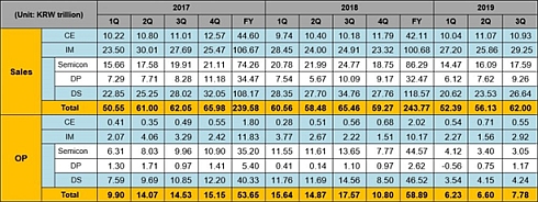 Консолидированная выручка подразделения бытовой электроники (CE), в которое входят направления устройств визуального отображения и цифровой бытовой техники, в 3-м квартале 2019 г. составила 10,93 трлн вон, операционная прибыль за данный период — 0,55 трлн вон.