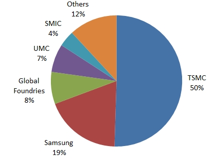 Рыночные доли ведущих полупроводниковых фабрик мира в 3 кв. 2019 г. (по выручке в долл. США