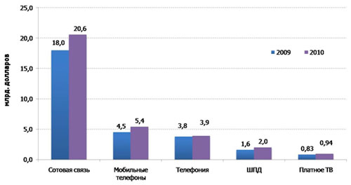 В первом полугодии 2010 г. количество абонентов аналогового платного телевидения составило 85% от общего количества абонентов фиксированного платного телевидения, а пользователей цифрового кабельного телевидения — только 11%. Доля IPTV пока составляет 4%.