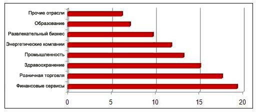 Прогноз аналитиков, основанный на результатах исследования разных вертикальных рынков, показывает, что наибольшего успеха в ближайшие 18-24 месяца добьются те отрасли, где внедрение мобильных BI-приложений наиболее скоординировано по отношению к бизнес-целям и тесно связано с такими бизнес-моделями, которые требуют обработки данных и принятия решений в режиме реального времени. Понятно, что наиболее актуальная сфера их применения — в области финансовых услуг (см. рисунок).