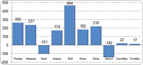 В ОКТЯБРЕ ПРОДЕМОНСТРИРОВАЛ ОТРИЦАТЕЛЬНЫЙ РЕЗУЛЬТАТ ПО ЭТОМУ ПОКАЗАТЕЛЮ.