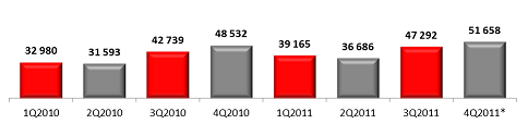 4-М КВАРТАЛЕ 2011&NBSP;Г. ВЫРОСЛО НА&NBSP;11% В&NBSP;СРАВНЕНИИ С&NBSP;АНАЛОГИЧНЫМ ПЕРИОДОМ ПРОШЛОГО ...