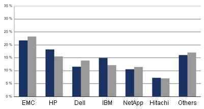 Безусловным лидером рынка остается компания EMC, чей доход составил 1,8 млрд. долл. ( плюс 3,8% по сравнению с прошлым годом);