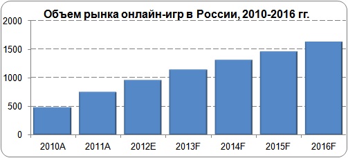 *включены данные по рынкам ММО-игр (браузерные, клиентские), казуальных игр, игр в социальных сетях. Не включены данные по рынкам PC-, Mac-игр, а также сетевых, консольных, мобильных игр, и игр на планшетных компьютерах.