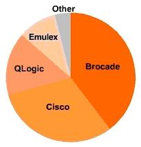 Рейтинг производителей сетевого оборудования для SAN возглавила компания Brocade, чья доля рынка почти вдвое больше второго игрока этого рынка — компании Cisco Systems, хотя тенденция к конвергенции и обеспечила последней увеличение ее доли мирового рынка почти на 8 п.п.. Третье и четвертое места — у QLogic и Emulex, по-прежнему лидирующих в поставках комбинированных контроллеров шин (host bus adapter) и контроллеров для конвергентных сетей (converged network adapters, CAN).