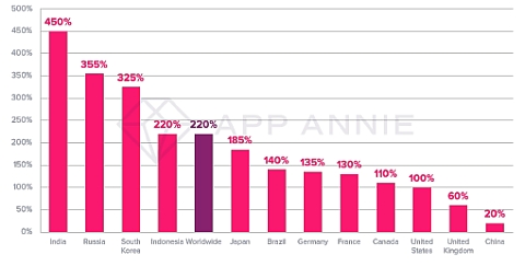 Во всем мире пользователи стали проводить в приложениях для работы и общения с коллегами удаленно на 220% больше времени (по сравнению с 4-м кварталом 2019 г.). Россияне же потратили в приложениях для работы аж на 355% больше времени.