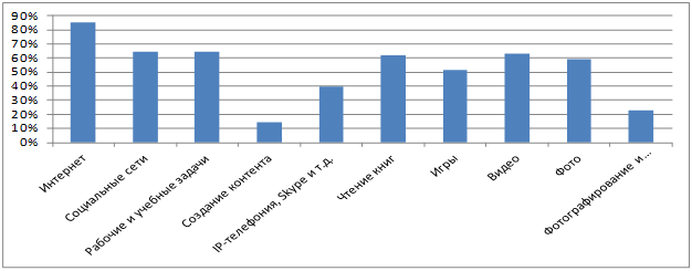 Рис. 2. Основные задачи, решаемые с помощью планшетов.