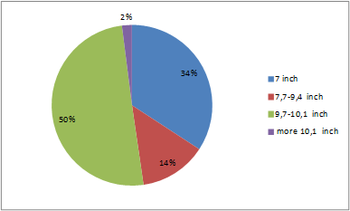 Рис. 3. Распределение моделей планшетных компьютеров по диагонали экрана (по состоянию на IV квартал 2012 г.).