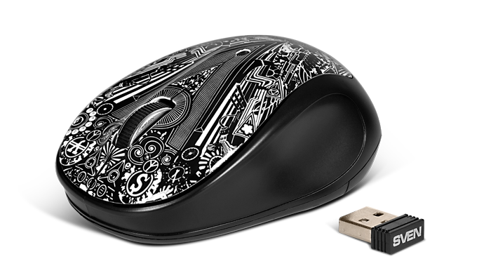 RX-360 Art Wireless от компании SVEN работает точно и четко на любой поверхности – за позиционирование мыши отвечает современный сенсор Blue Led.